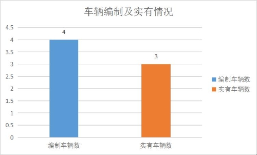 车辆编制4辆,在编实有车辆3辆,超编0辆。